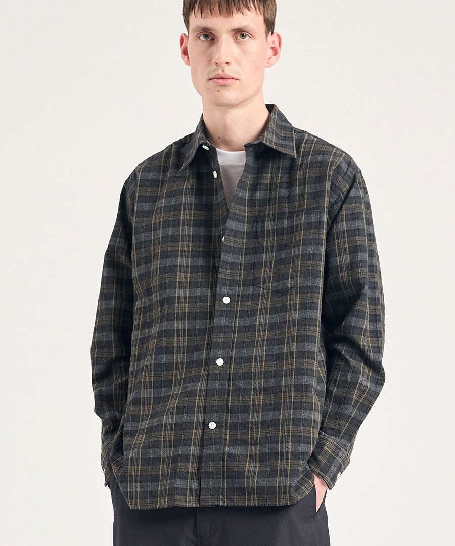 Ole Oversized Wool Check Shirt fra Norse Projects er en stilfuld og komfortabel skjorte i blødt uld, perfekt til den køligere årstid. Den oversized pasform giver et afslappet, moderne look, mens det klassiske ternmønster i charcoal grey tilføjer en tidløs elegance.