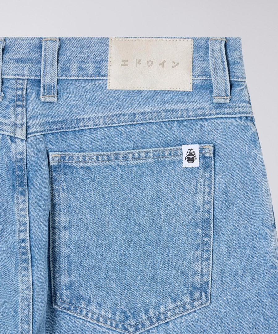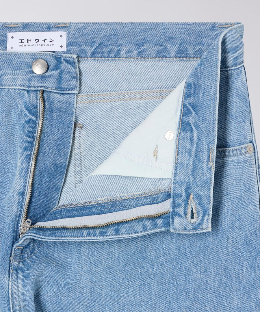 The Edwin Matrix Pant in Blue with Heavy Bleach Wash is a statement piece that combines a classic denim silhouette with a modern attitude. Crafted from 14.6oz Arctic Blue Denim in 100% cotton and treated with a heavy bleach wash, these pants create a dramatic, contrasting look with unique fading effects.