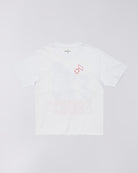 The Charmer T-Shirt delivers Edwin's signature blend of understated graphics and premium construction. Crafted from 160g/m² single jersey cotton and garment-washed for immediate softness, this oversized white tee features a distinctive backprint that adds character without overwhelming the clean silhouette.