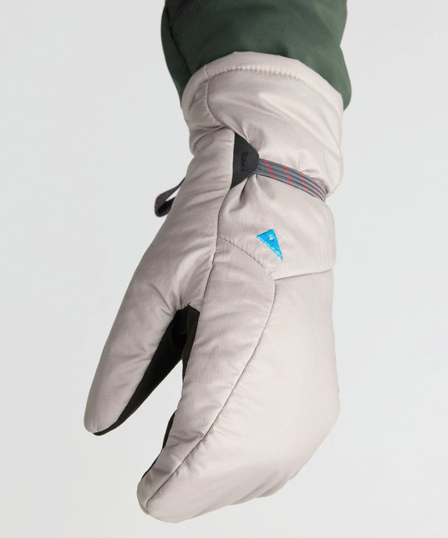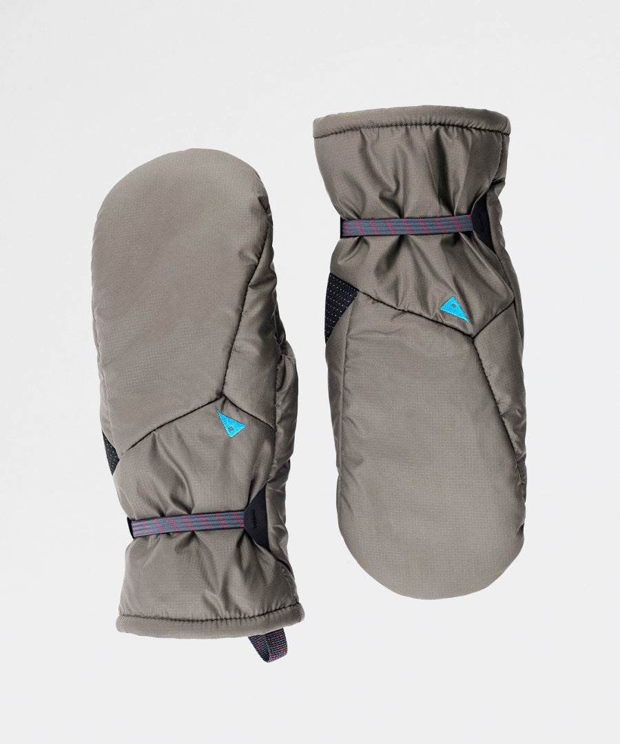 Gevar Mitts are ultra-lightweight yet incredibly warm PrimaLoft® mittens designed for cold expeditions and unpredictable conditions. Made with a durable mini ripstop shell, 80 g PrimaLoft® insulation, and a plush high loft lining, they provide exceptional warmth without bulk. The palm is reinforced with soft, tough recycled AX Cinco fabric for lasting durability and excellent grip. An elastic cuff ensures a secure fit while a grab loop makes storage and hanging easy. A reflective triangle on the back adds extra visibility in low light.