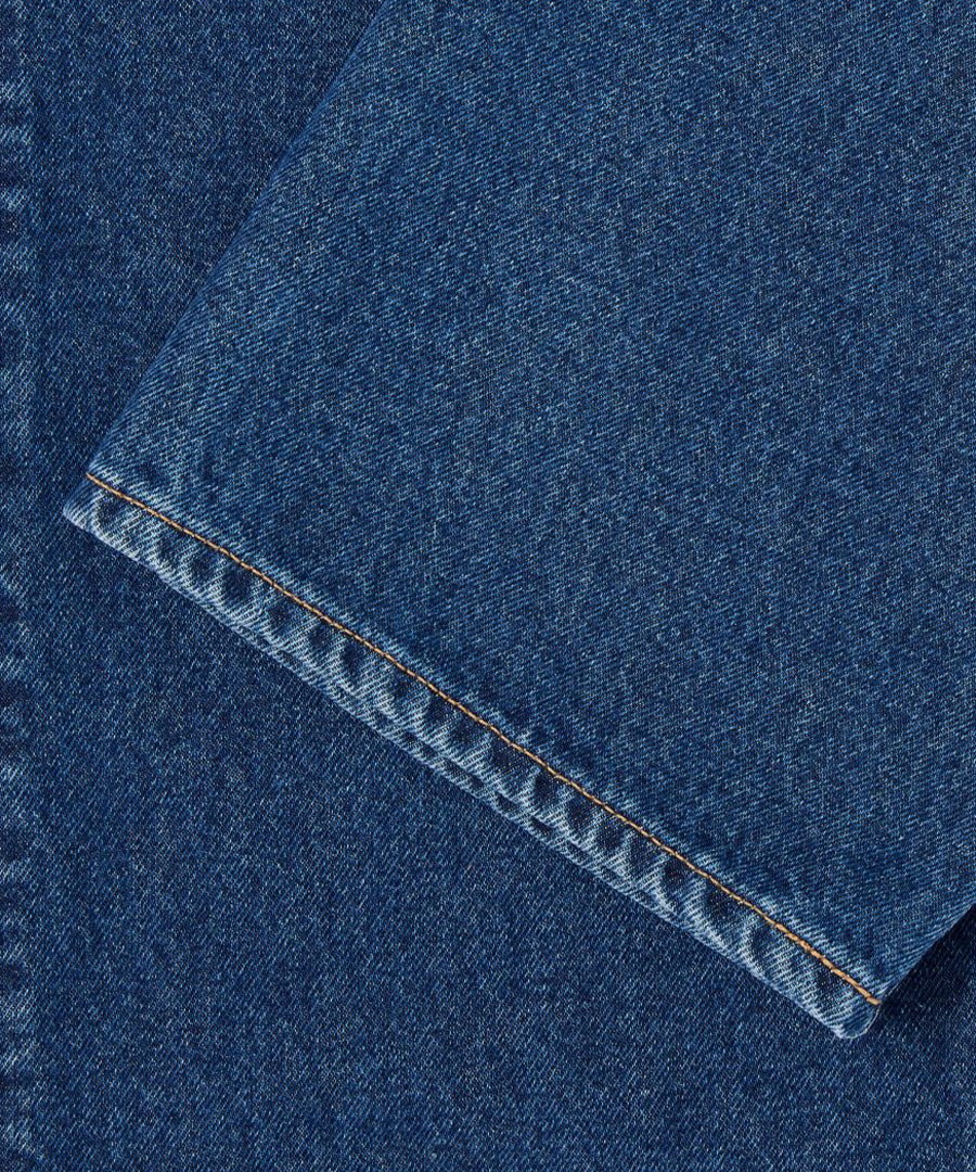 For those new to the world of denim, selvage (or selvedge) is derived from the term "self edge". It denotes the natural end of a fabric roll that prevents unraveling. Selvage is often woven with contrasting colored threads, such as red, orange and green (Rainbow).