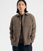 Ole Oversized Wool Stripe Shirt Seal Brown