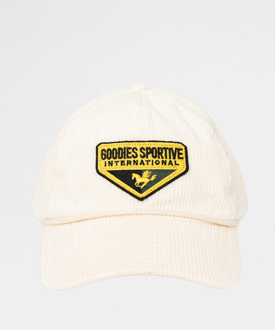 Klassisk bone cap i corduroy fra Goodies Sportive. Den ecru-farvede cap har en premium corduroy-finish, der giver et stilfuldt og tidløst udtryk. Perfekt accessory til både casual og streetwear-looks.