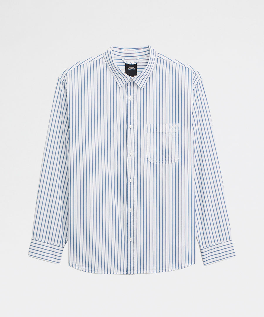 The Dobby Stripe Shirt White from Vans is a classic shirt with a refined dobby weave and subtle stripes. The white base provides a fresh, versatile profile that works equally well for casual everyday wear as for more polished looks.