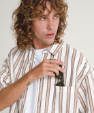 The Lawson Stripe Shirt is the perfect companion to your streetwear wardrobe. Wear it open over a graphic tee or buttoned up for a more classic look. The striped detail adds visual flow without being too intrusive.