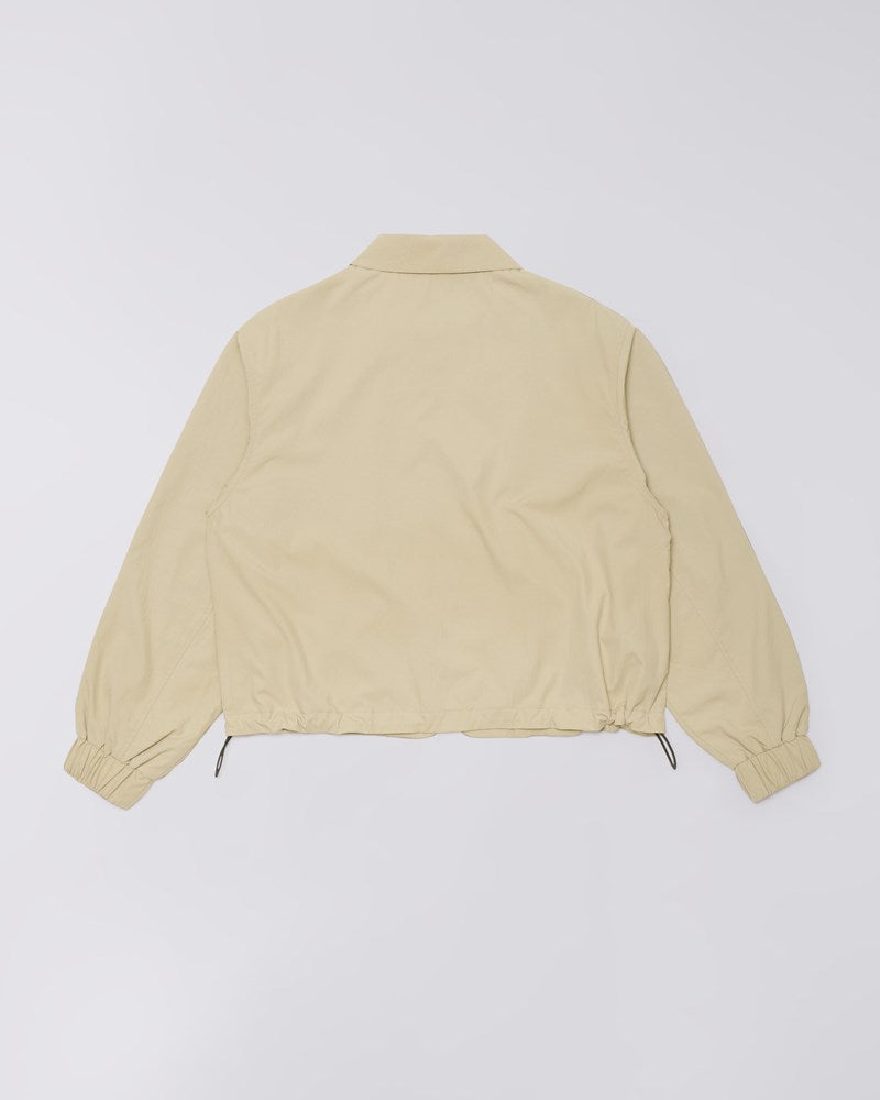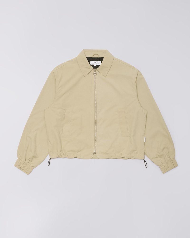 A versatile and lightweight outer layer, the W' Rory Jacket is tailored specifically for the female silhouette and cut from 130g/m² Paper Touch Polyamide with a water-resistant finish. Presented in the earthy Seneca Rock color, it is shaped to a contemporary boxy fit and is fully lined. Functional details include an Edwin personalized metal zip closure, two practical side pockets, elasticated cuffs, and an adjustable cord at the inside waistband for a personalized fit.