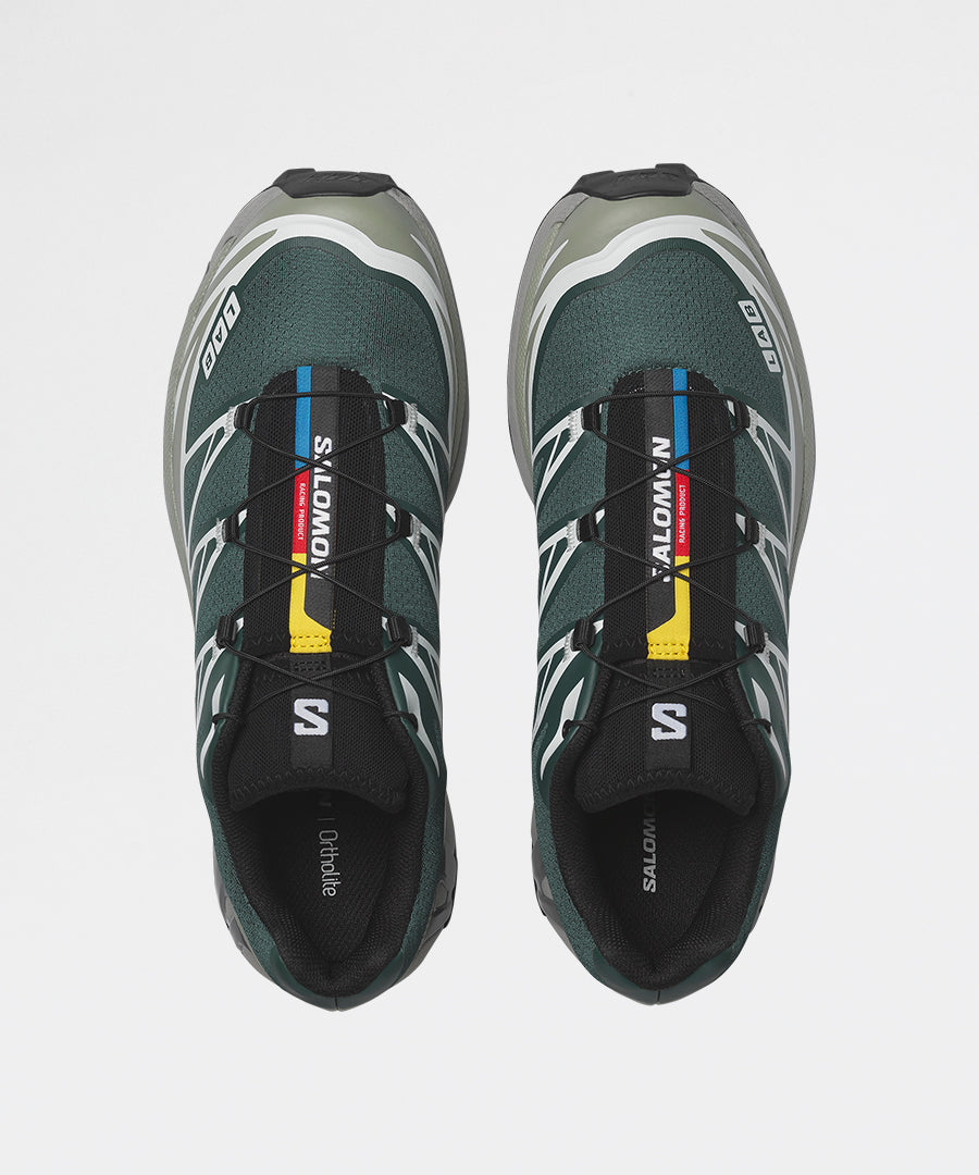 A legendary ultra-distance trail runner transformed into a streetwear icon, the Salomon XT-6 combines proven outdoor performance with a fresh Bistro Green/Green Milieu/Black colorway that brings trail heritage into a contemporary context.