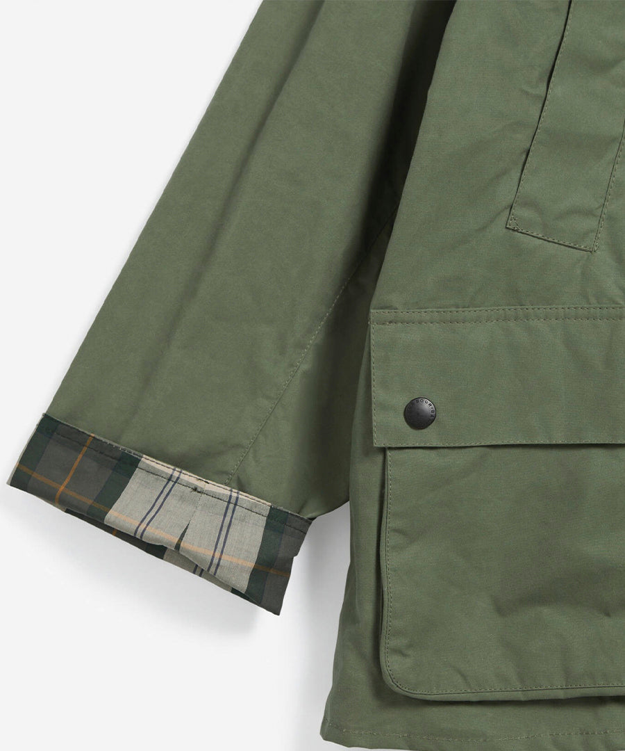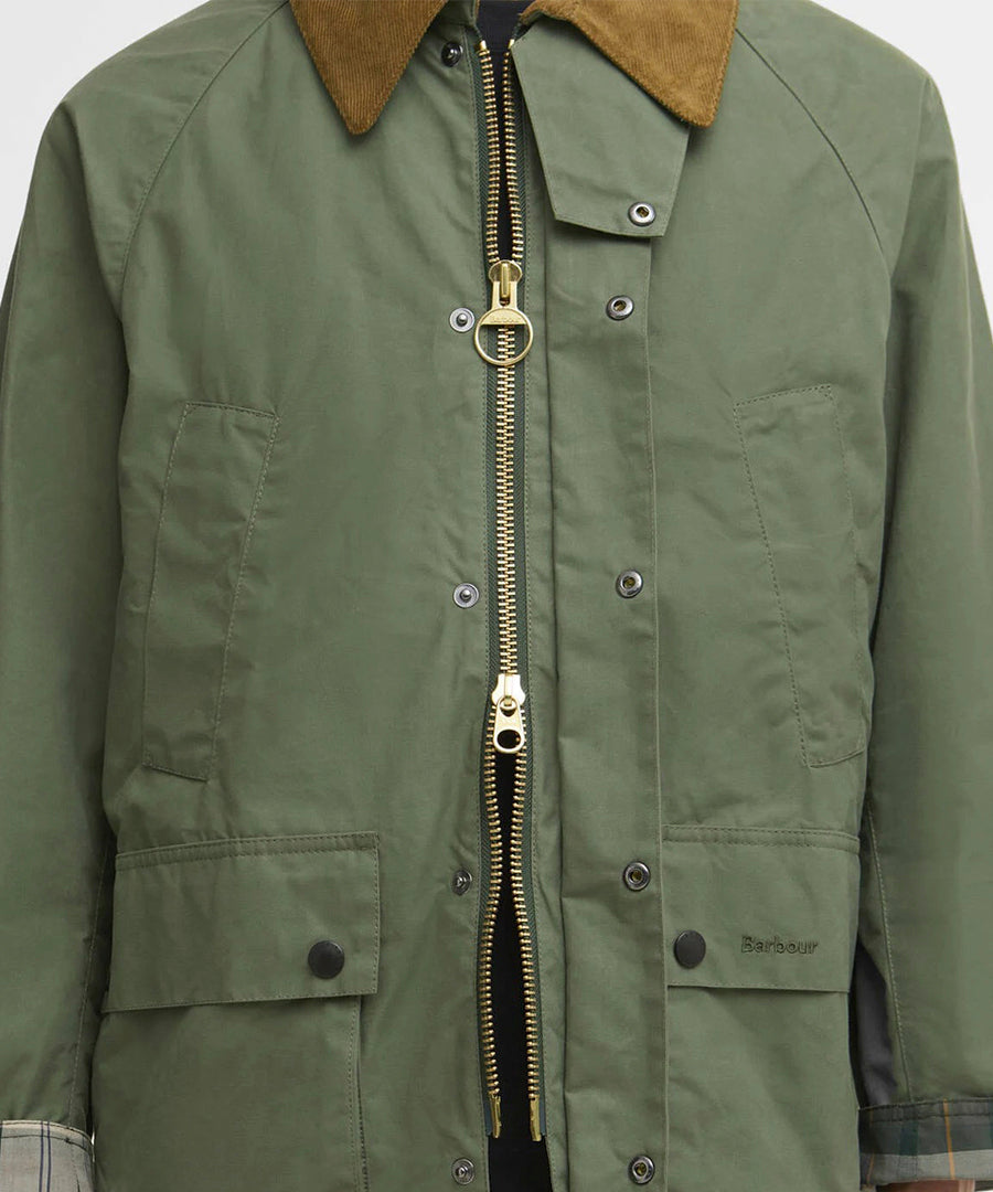 The Barbour Oversized Bedale Casual Jacket updates a classic heritage style with a relaxed, modern fit. Crafted from durable coated cotton, it features a needlecord collar, zip front with stud placket, and practical handwarmer and bellow pockets. Tartan-turned back cuffs add a signature touch, blending traditional Barbour detailing with contemporary comfort. Perfect for layering, this jacket delivers timeless style with effortless everyday functionality.