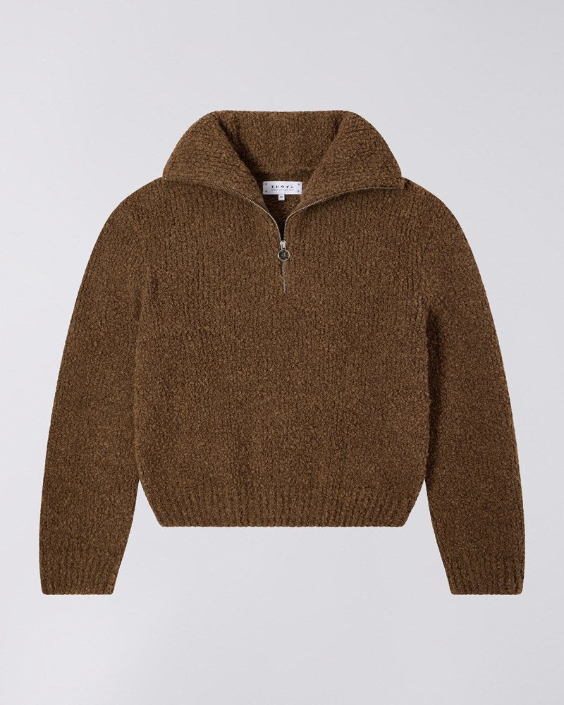 The EDWIN W' Neva Sweater is a boxy fit sweater made from soft fuzzy knit. It features a zipped high collar with personalized zipper and is finished with a flag label.