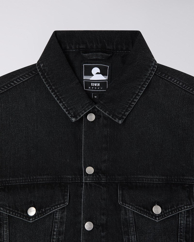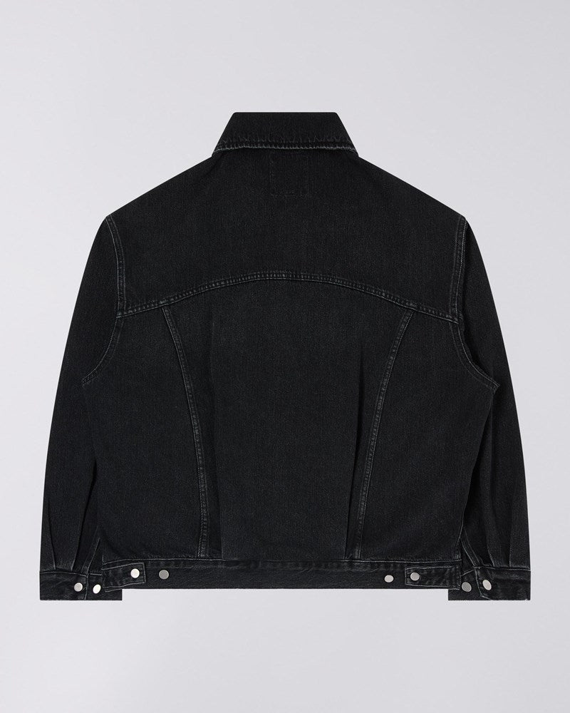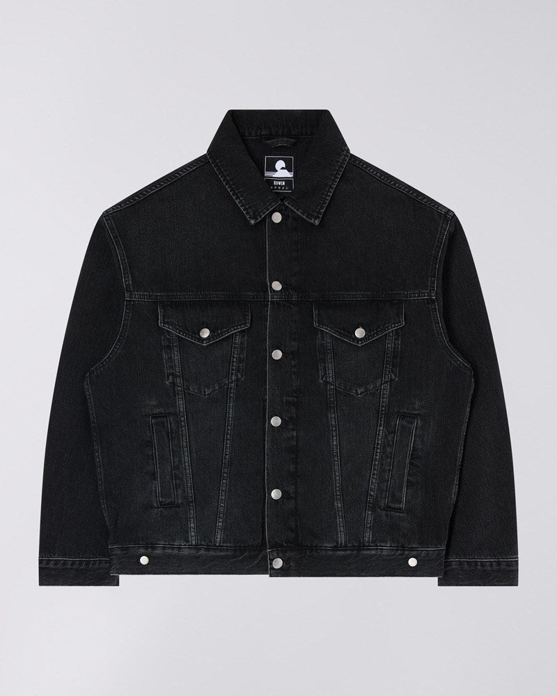 The EDWIN EU-Trucker Jacket is an oversized denim button-down jacket with two buttoned chest pockets and side pockets. The jacket is made from a 13.56oz Pembroke Black Denim 100% cotton.