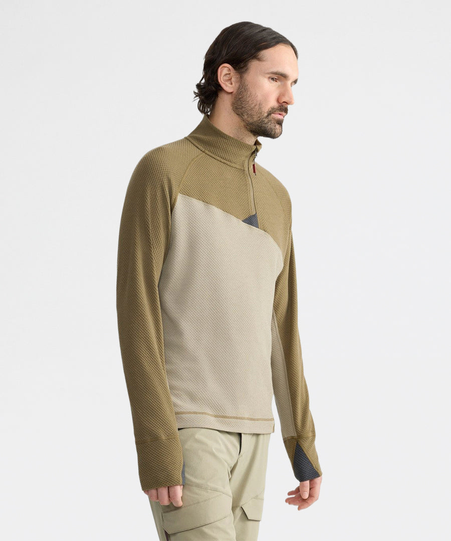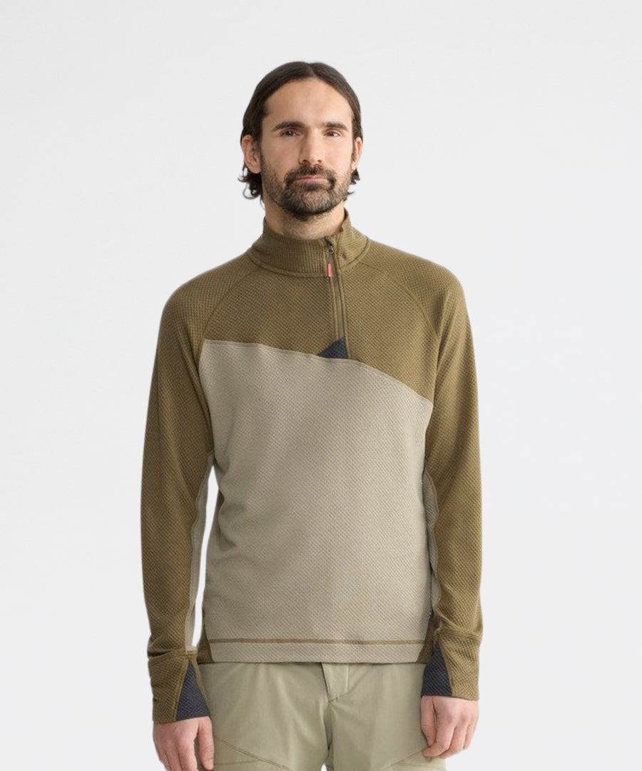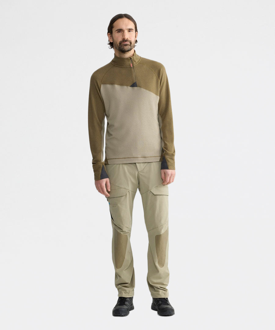 Huge is a light midlayer or base layer for fast paced activities like ski mountaineering, alpine climbing and fast trekking. It’s both warm and quick drying and designed to be worn comfortably with backpacks and shell layers. The Huge Half Zip Sweater is constructed from our Norna® fabric that draws moisture away from the skin then spreads it out to dry quickly, with a structural knitting that builds air close to the skin for even quicker drying and warmth. It features a semi half zip neck with added chin protection and raglan sleeves for a versatile fit.