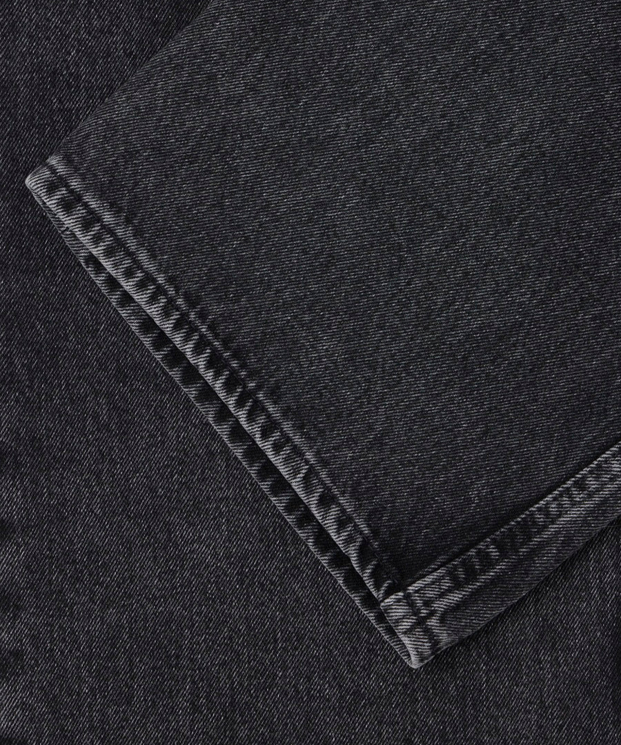The loose straight fit creates a relaxed, classic silhouette with a straight line from hip to ankle - a timeless fit that suits all body types and is easy to style. The mid-rise fit ensures a comfortable and versatile fit, while the exclusive matte wash gives the black denim a deep, matte finish without shine - perfect for a modern, minimalist aesthetic.