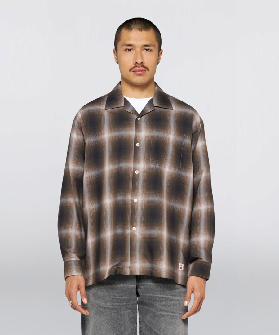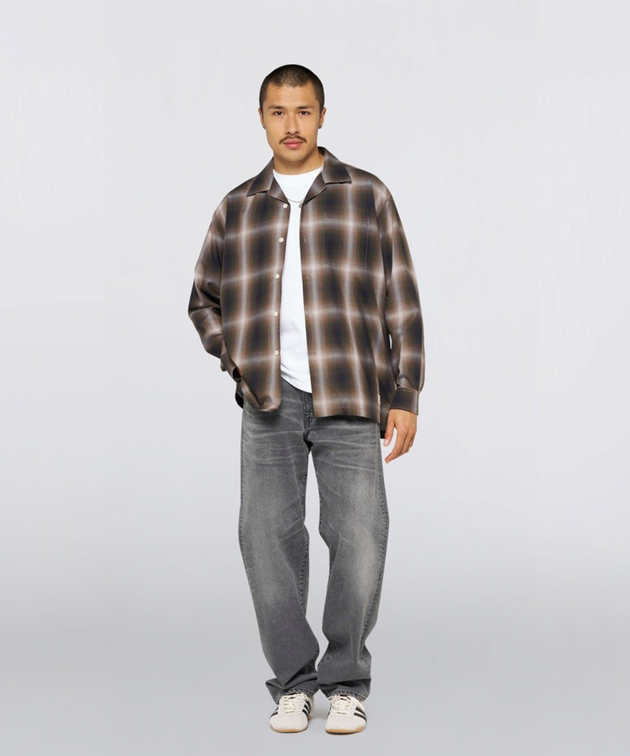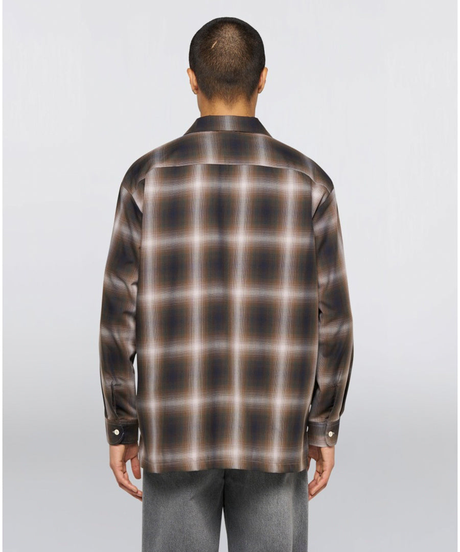 The classic open collar construction provides a relaxed, vintage-inspired aesthetic, while the hombre plaid pattern adds visual flow. The garment wash process ensures the shirt feels broken in from the first wear, and the oversized fit provides maximum comfort and styling flexibility.