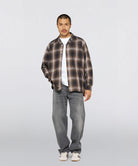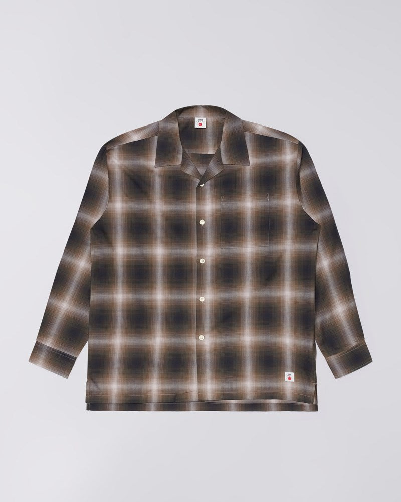 The Open Collar Shirt Ls in Brown/Grey combines classic hombre plaid with modern sustainability. Made from 128g/m² garment-washed fabric with an oversized fit, this shirt delivers casual style with a soft, lived-in feel.