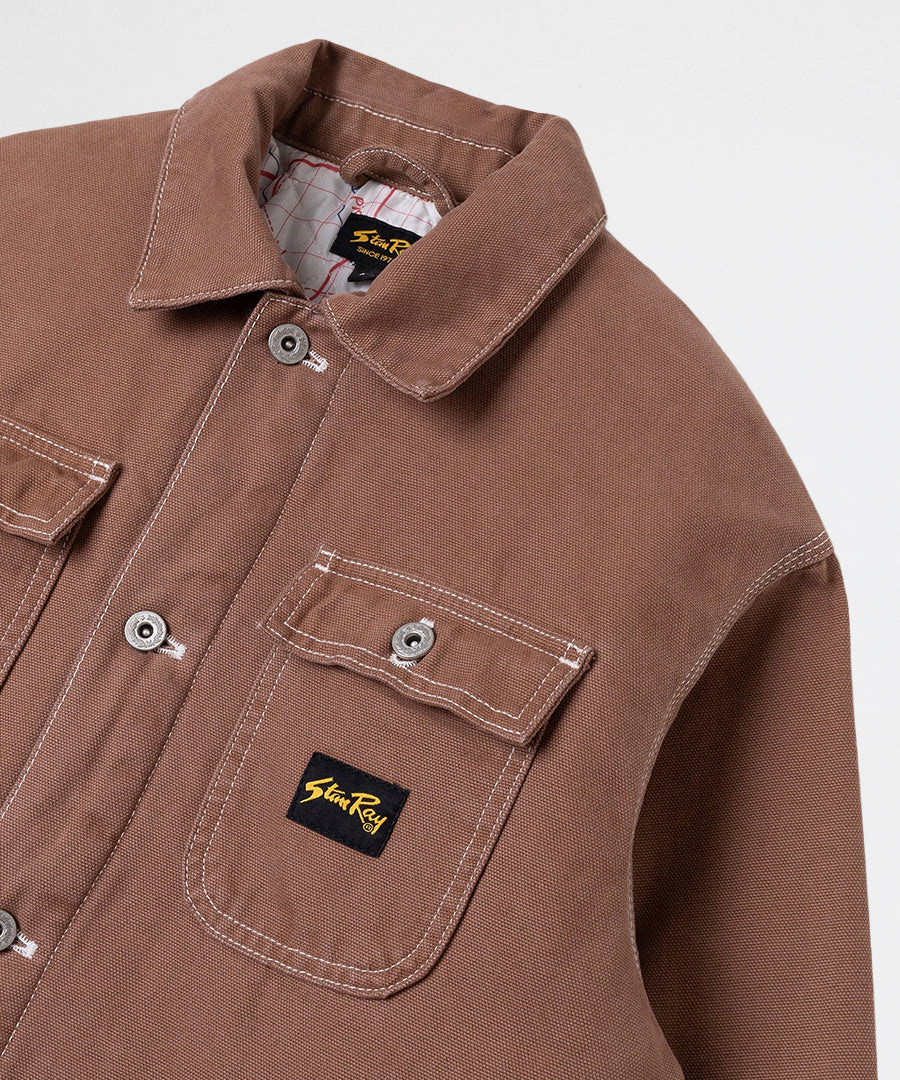 Pork chop jacket pops with contrast needle cord collar.  Lined internally with 100 gsm and Crockett map print. Featuring elasticated cuffs, easy access pork chop pockets with embossed Stan Ray snaps and double chest pockets.