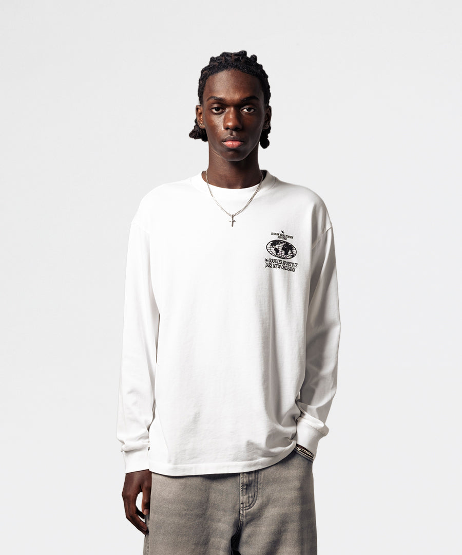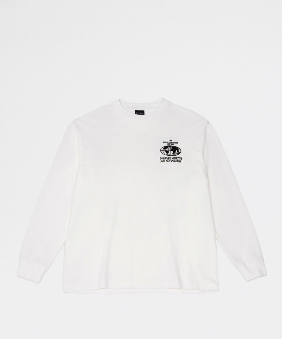 Med sit rene hvide base og karakteristiske Radio Station-grafik kombinerer denne langærmede t-shirt nostalgisk charme med funktionel komfort. Perfekt til layering eller som standalone statement-piece.