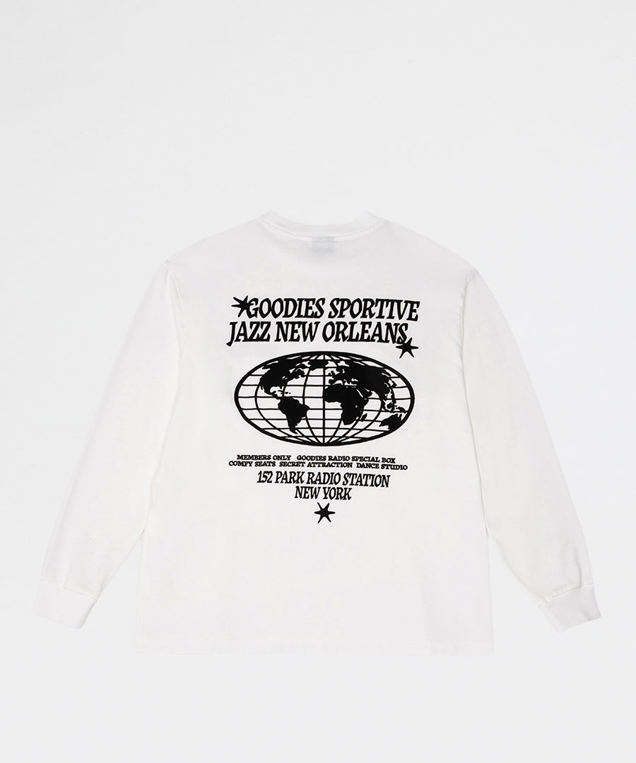 Radio Station Long Sleeve – en klassisk langærmet t-shirt med grafisk print, der bringer vintage radio-æstetik til moderne streetwear.