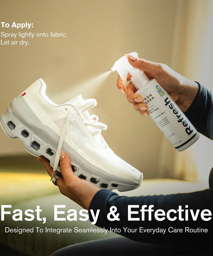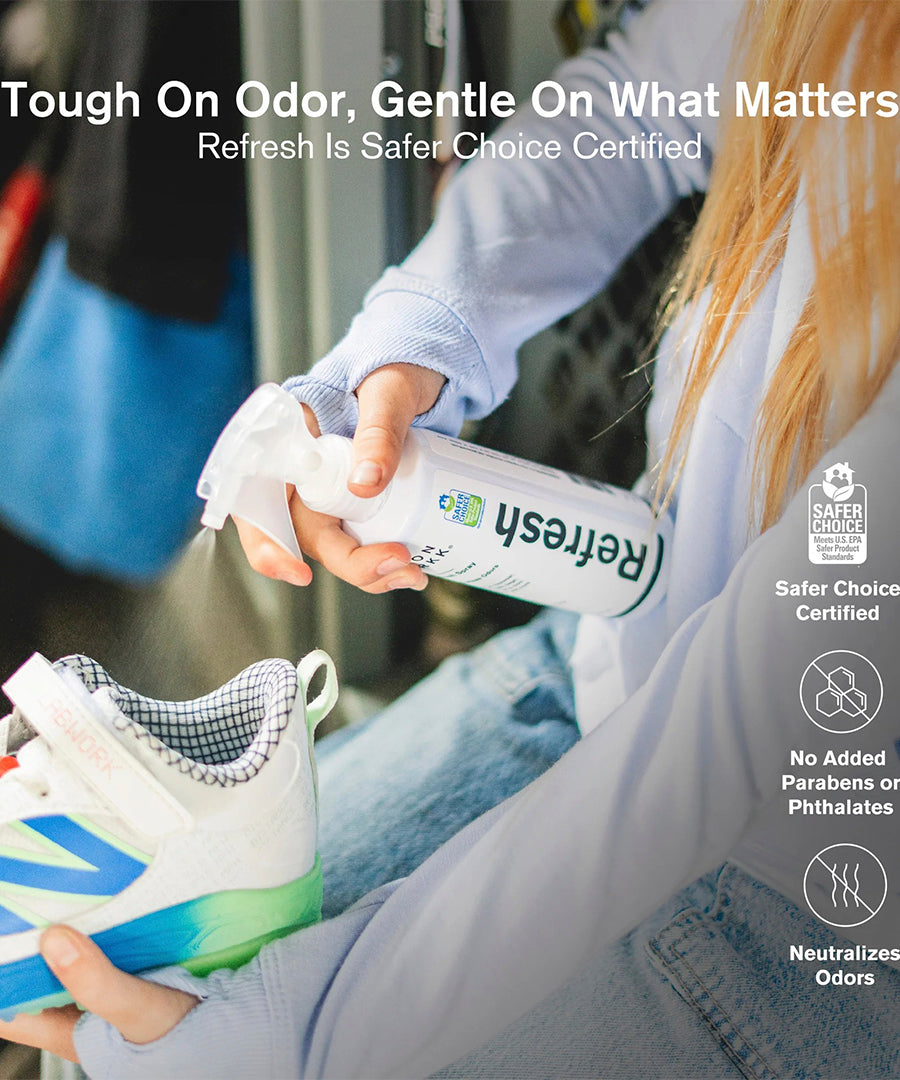Refresh Spray is specially formulated to neutralize unpleasant odors from sweat and everyday wear. The lightweight formula penetrates deep into the material without leaving stains or moisture, and it can be used on all types of shoes - from sneakers and running shoes to leather shoes and boots.