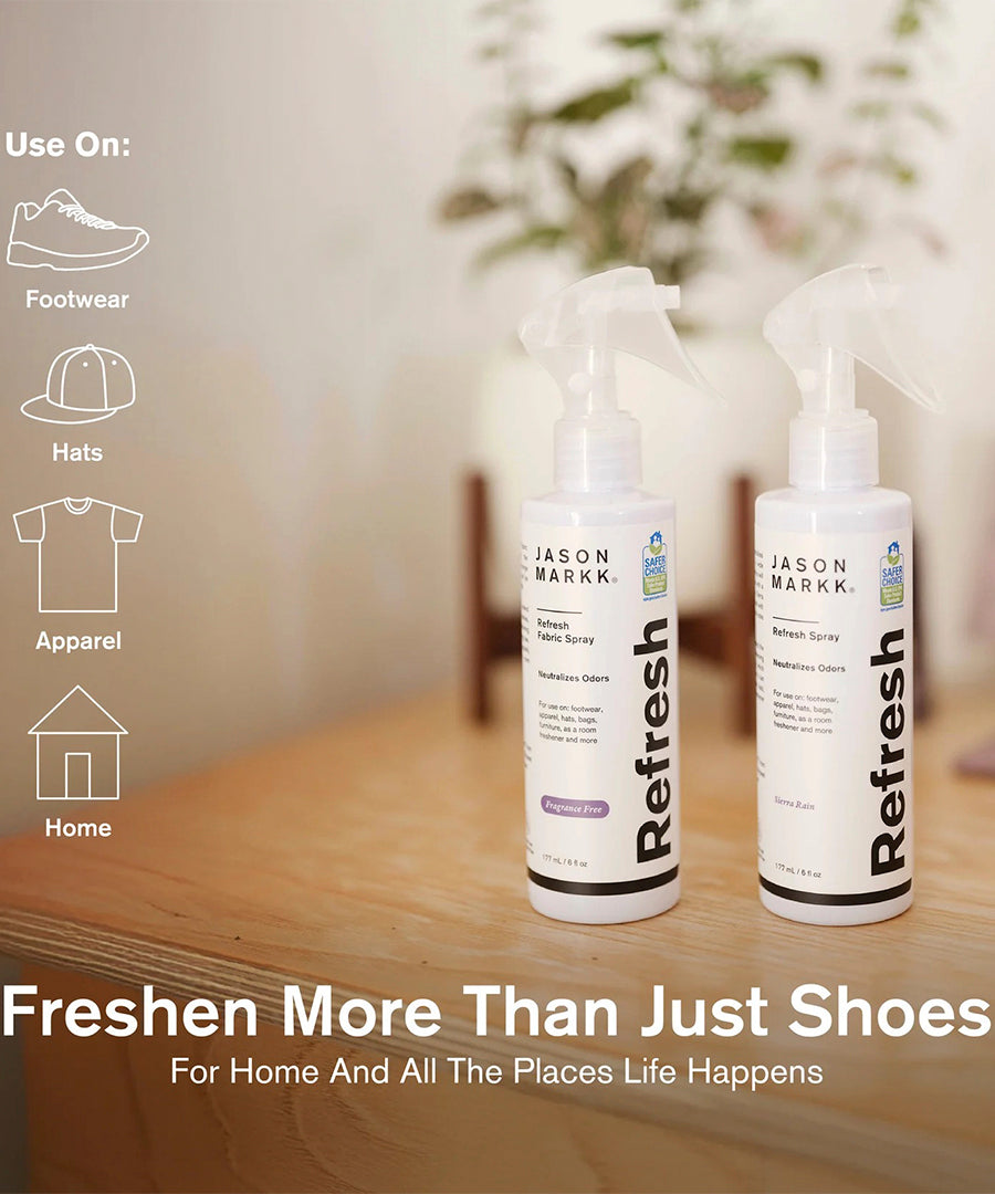 Jason Markk Refresh Spray is the perfect solution for keeping your shoes fresh between cleanings. This innovative spray effectively eliminates odors and leaves a pleasant, fresh scent.